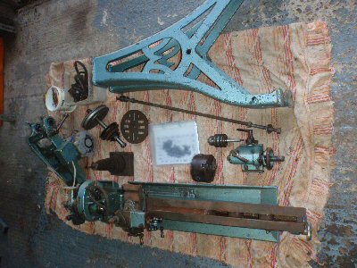 My late fathers Myford ML4 - 3.5" x 23" gap-bed, backgeared and screwcutting lathe. It has its own stand and tray. It was working fine before I brought it home, dismantling it to movable lumps. How complete the assesories are I am not sure, it would be a case of you inspecting what I have. It has a 3 jaw self centering chuck - the only one with it, a faceplate and tailstock with centre and drill chuck, a set of change gears and a selection of tools etc. (including a manual). It has been converted to a V belt drive with a high level motor (suspect off a bench top model). I need to create some space for a 'new to me' lathe I have recently purchased. Must be worth a £200